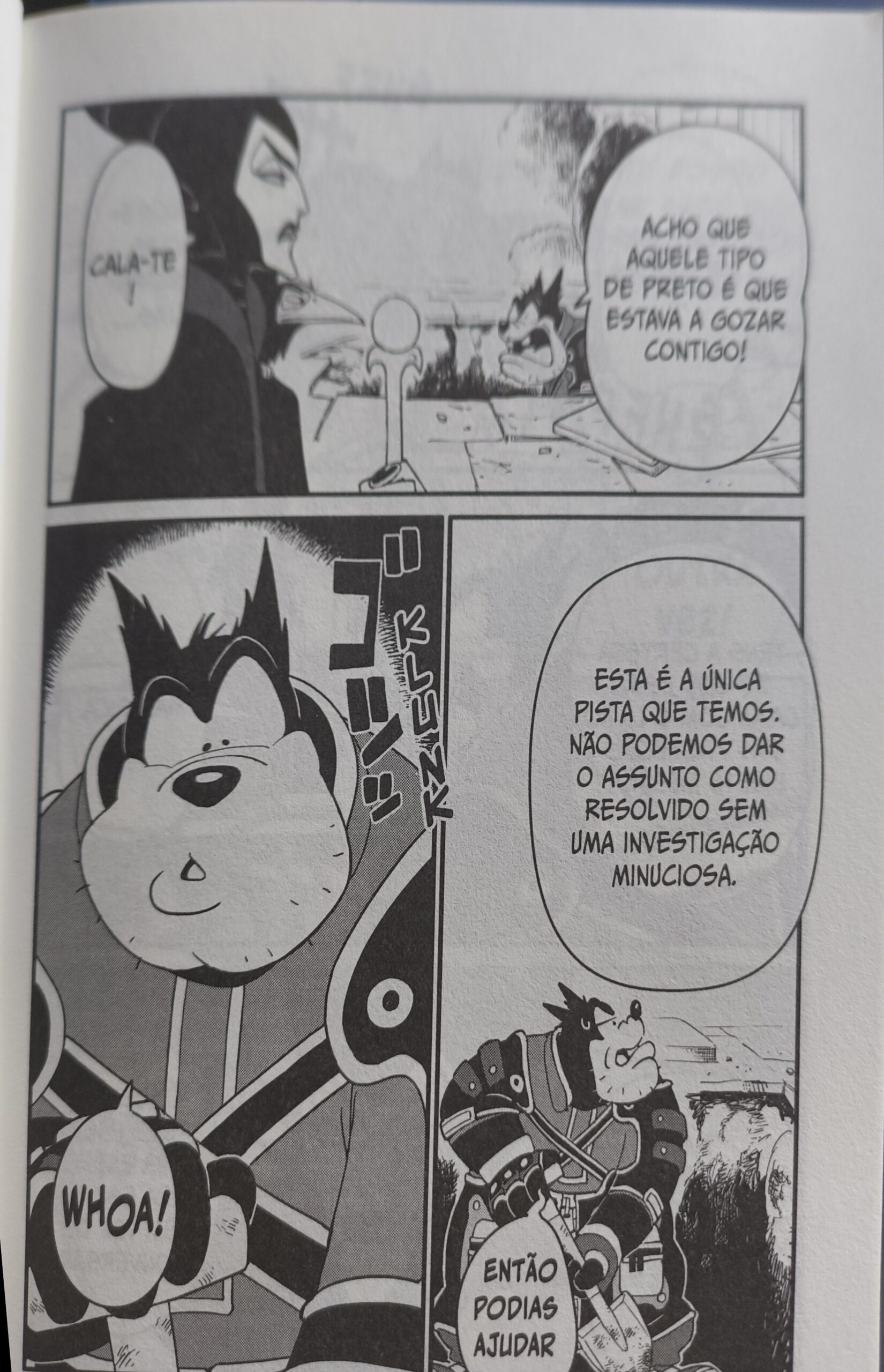 Ainda assim, convém deixar algo bem claro desde cedo: se aterrares neste mangá sem qualquer conhecimento prévio de Kingdom Hearts, vais ficar perdido. Não confuso, perdido. Isto não é um manual de iniciação. Não é “Kingdom Hearts para principiantes”. É uma aventura pensada para fãs e para quem, no mínimo, já sabe quão estranho e interligado este universo é. O mangá até tenta ajudar, simplificando alguns dos conceitos mais convolutos, mas há um limite para a contenção de danos quando a base inclui guerras ancestrais de Keyblades e profecias escritas em livros misteriosos.