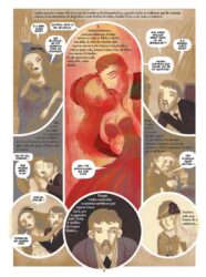 Interessante é ainda o modo como as ilustrações se inscrevem na página. Para evitar a monotonia de encaixilhar sempre os desenhos em pequenas molduras retangulares, por vezes, o ilustrador cria na prancha espaços circulares, ogivais ou de outras formas, surpreendendo o leitor e, em alguns casos, sublinhando significados da narrativa. A título de exemplo, na parte final da história, Afonso é retratado, após a sua morte, num caixão que preenche uma vinheta em forma de ogiva, sugerindo os contornos de um barco ou da nave de uma catedral. Nas páginas seguintes, é a vez de Maria Eduarda, primeiro, e Carlos, depois, serem retratados dentro de caixões inscritos em vinhetas ogivais, propondo, possivelmente, a ideia de que, após o fim do seu amor, as duas personagens morrem sentimentalmente.