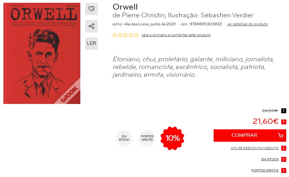 “Orwell” funcionará muito bem como um documento sobre a vida de um enorme vulto e a importância que ele ainda tem 70 anos depois da sua morte, mas deverá agradar mais àqueles mais distantes da banda desenhada, ou aos leitores ocasionais do que propriamente aos fãs do género habituados a um outro tipo de ritmo e narrativa mais envolvente e atractivo. Mas isso acontece com frequência em quase toda a BD biográfica. No cinema deste género vemos muitas vezes partes mais romantizadas ou dramatizadas para aumentar a atenção do espectador, mas nas histórias aos quadradinhos isso não acontece tantas vezes, o que torna a leitura mais monótona a desinteressante. E é isso acontece nesta obra, que apesar da sua relevância global acabou por me fazer bocejar algumas vezes.