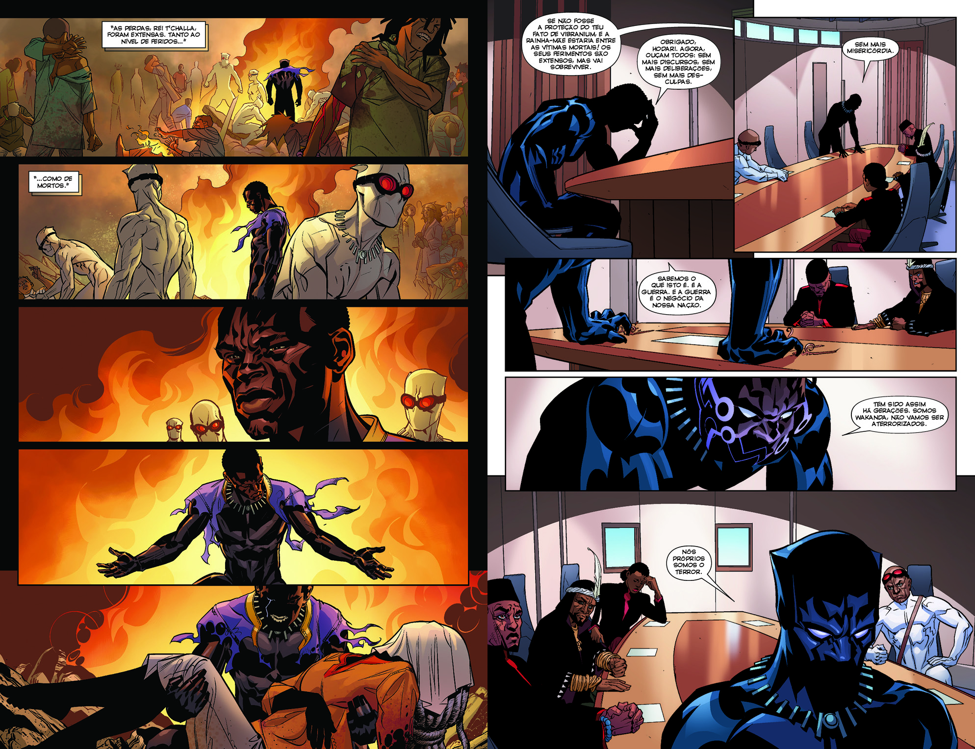 PANTERA NEGRA é o título cerimonial ancestral de T’Challa, o rei de Wakanda. T’Challa divide o seu tempo entre a proteção e bem-estar do seu reino, tarefa na qual conta com a ajuda da sua guarda real feminina de elite, as Dora Milaje, e o seu trabalho de super-herói, como membro de equipas como os Vingadores e os Supremos. A nação de Wakanda é a sociedade do planeta mais avançada a nível tecnológico. Este pequeno país africano está situado sobre um enorme jazigo de um recurso natural extremamente raro chamado vibranium. T’Challa passou algum tempo afastado do trono. Durante esta ausência foi a sua irmã Shuri quem governou o país, como rainha e Pantera Negra, mas Shuri morreu a defender Wakanda do exército de Thanos. Agora, T’Challa é de novo rei, mas o povo está inquieto. Quando um grupo terrorista sobre-humano faz despoletar uma revolta sem precedentes, Wakanda entra numa espiral de violência que fará o povo duvidar do seu próprio rei. T’Challa luta por conseguir manter o seu povo unido, ao mesmo tempo que das sombras surge um poderoso inimigo!
