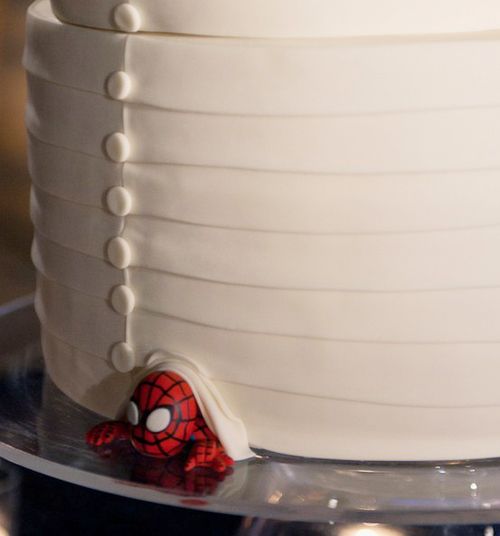 Aparentemente, esconder um pequeno Homen-Aranha no bolo de casamento tem sido tem sido o Must have de qualquer bolo que se prese.