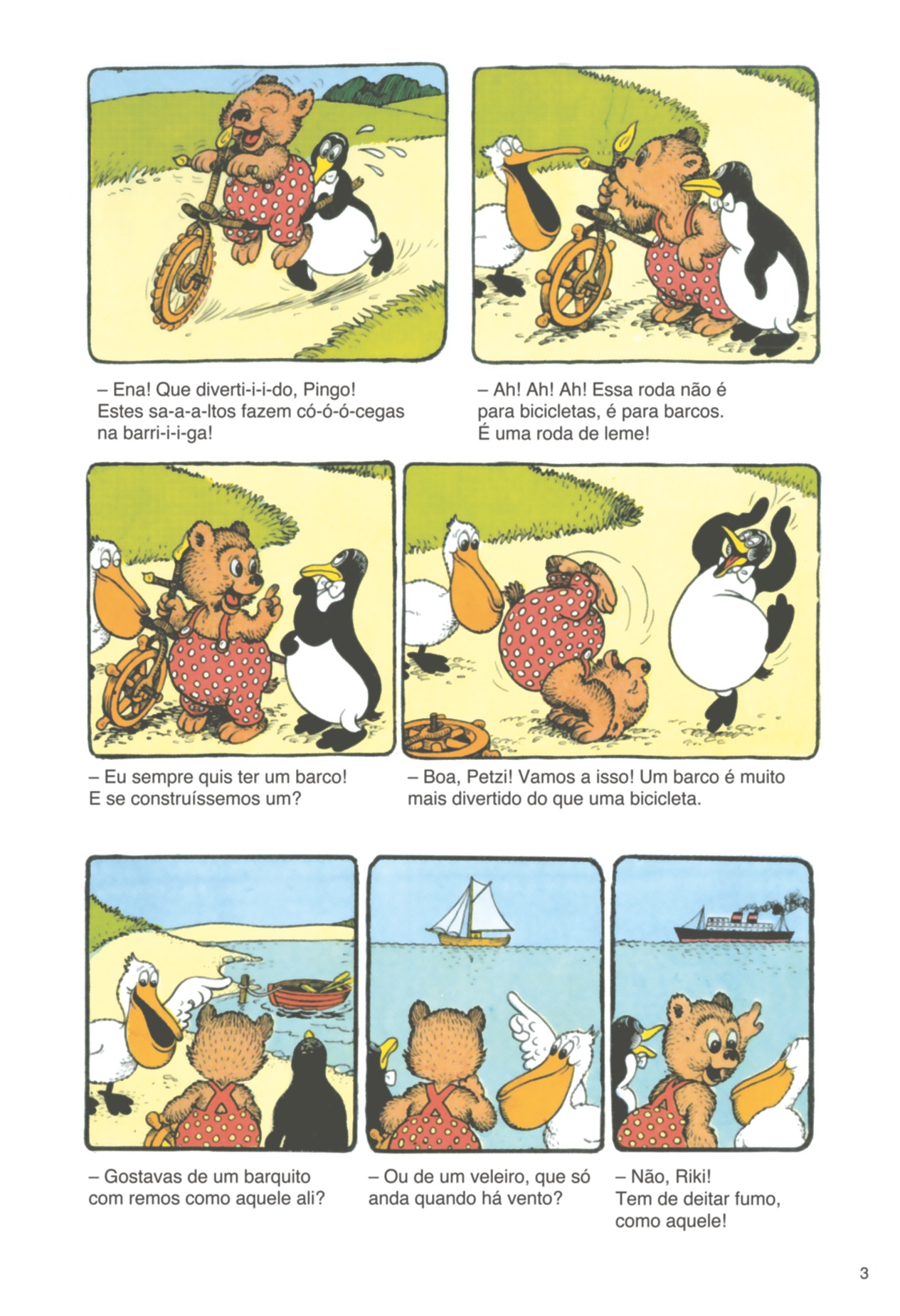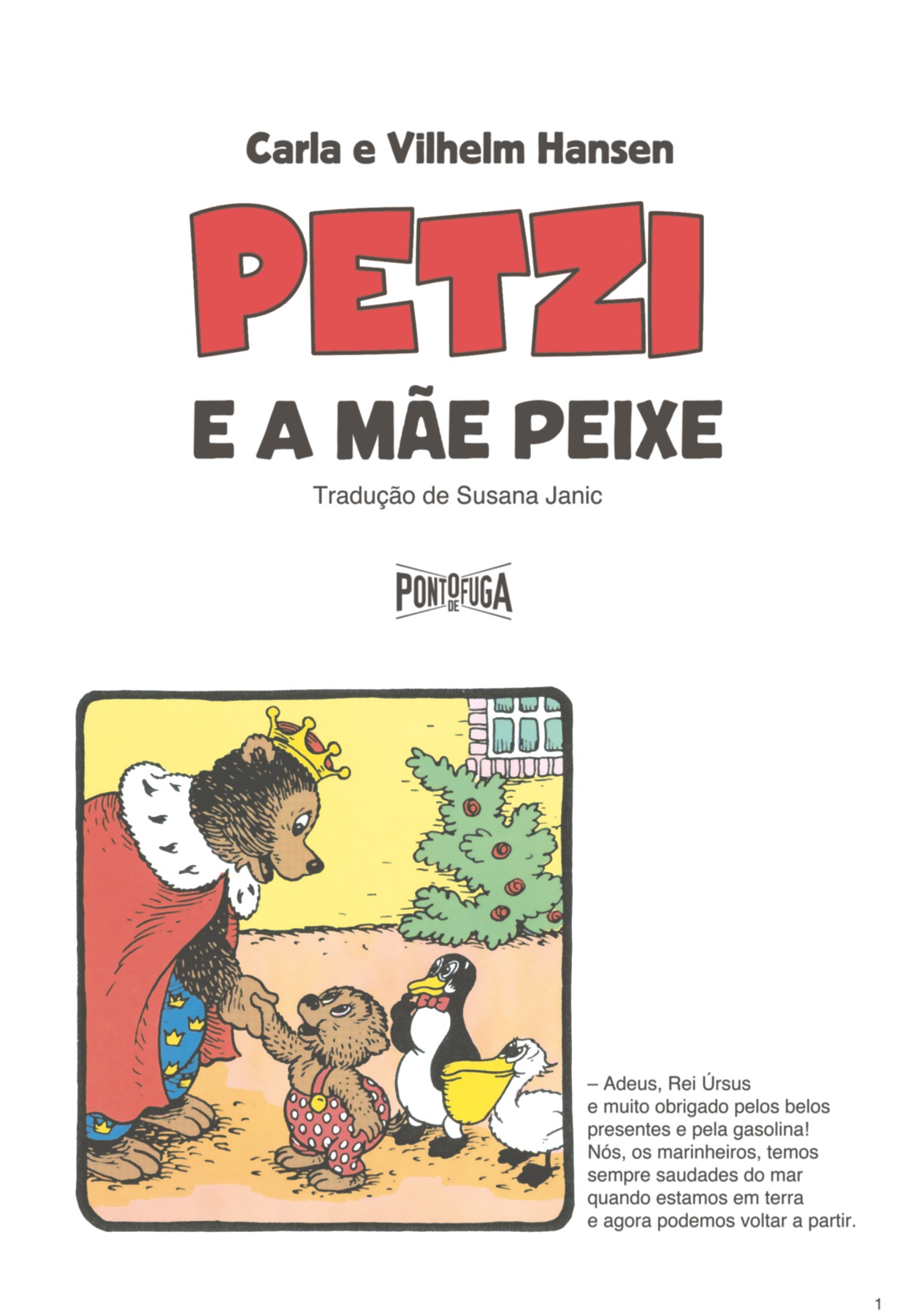 As novas edições, que constituem a primeira aposta da editora independente Ponto de Fuga, são traduzidas directamente a partir do original dinamarquês por Susana Janic. Para já vão estar disponíveis os três primeiros volumes: ‘Petzi Constrói um Barco’, ‘Petzi e a Baleia’ e ‘Petzi e a Mãe Peixe’.