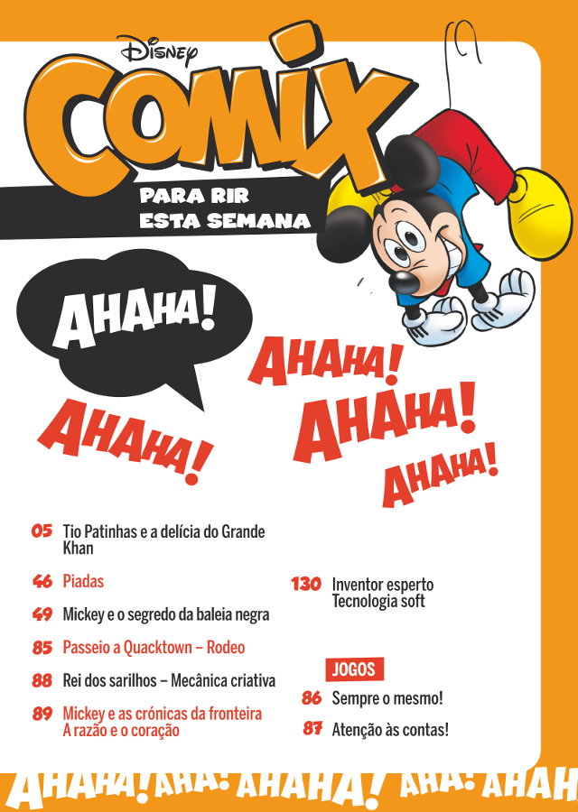 Como podes ver pela capa, as surpresas vão ser muitas! O Tio Patinhas está certamente surpreendido com o que encontrou. Nesta edição, fica provado que ele consegue farejar negócios à distância! Vejam lá que, desta vez, conseguiu localizar um bom negócio no longínquo Oriente! Por um bom tesouro, ele vai certamente até à China! E neste caso, o tesouro é mais… Uma receita! Tio Patinhas e a delícia do Grande Khan vai saciar o teu apetite por boas aventuras! Mas não é só o Khan que é grande! Sabem, por acaso, qual é o maior animal a habitar a terra? Se disseram baleia azul… Acertaram! Mas este caso vai ser mais… Negro! Bem, para perceberes tudo, o melhor é leres Mickey e a baleia negra! [fbshare]