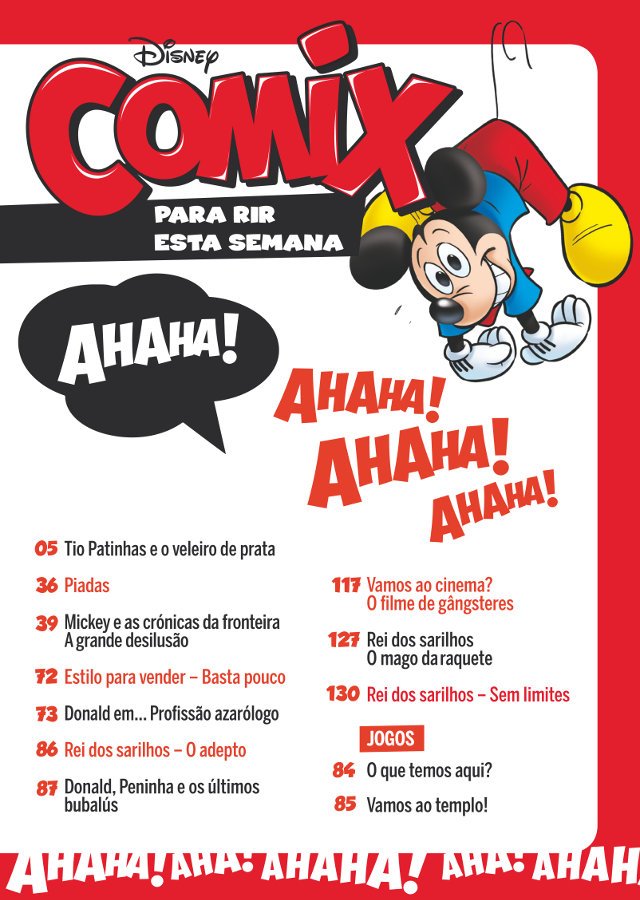 Todos a bordo do barco da boa banda desenhada! O Tio Patinhas convida-vos a embarcar numa edição absolutamente imperdível!!! Sabem o que é que resulta quando se junta o mestre Enrico Faccini, o Donald e o Peninha? Ora, resulta uma história mirabolantemente divertida, claro! Se não acreditam, leiam com os vossos próprios olhos Donald, Peninha e os últimos Bubalús! Hilariante!!! E o que podia ser melhor para aliar à diversão do que a aventura? É essa mistura explosiva que vos propomos, ao apresentarmos mais um episódio das Crónicas da Fronteira! O universo paralelo (e espacial) vai levar-te em mais uma viagem inesquecível, em Mickey e as crónicas da fronteira!