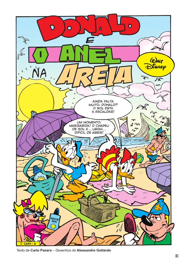 O Tio Patinhas vai a banhos e refresca-se numa maravilhosa praia… Será no Algarve? A pausa parece-nos, no entanto, de duração curta, pois o trabalho volta rapidamente! Os seus negócios parecem ter atingido outro patamar com o surgimento de múltiplas caixas-fortes!!! Terá o tio mais avarento do mundo capacidade para lidar com tal empreitada??? Fica a saber em Tio Patinhas e as caixas-fortes modulares! Mas as aventuras com patos não ficam por aqui! Há um pato que continua a usufruir da praia e do descanso… O Donald, claro! Mas satisfazer a Margarida não é tarefa fácil e, quando o anel desta se perde na areia, o teu herói não vai ter descanso absolutamente nenhum… Descobre tudo em Donald e o anel na areia![fbshare]