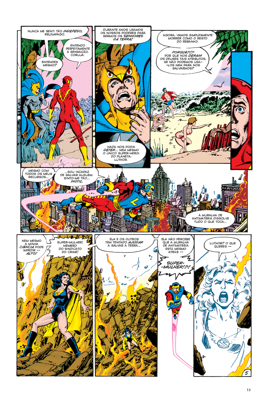 Escrita por Marv Wolfman e magistralmente ilustrada por George Pérez, esta saga reconstruiu completamente a continuidade da DC e representou um novo começo para os maiores super-heróis do mundo.