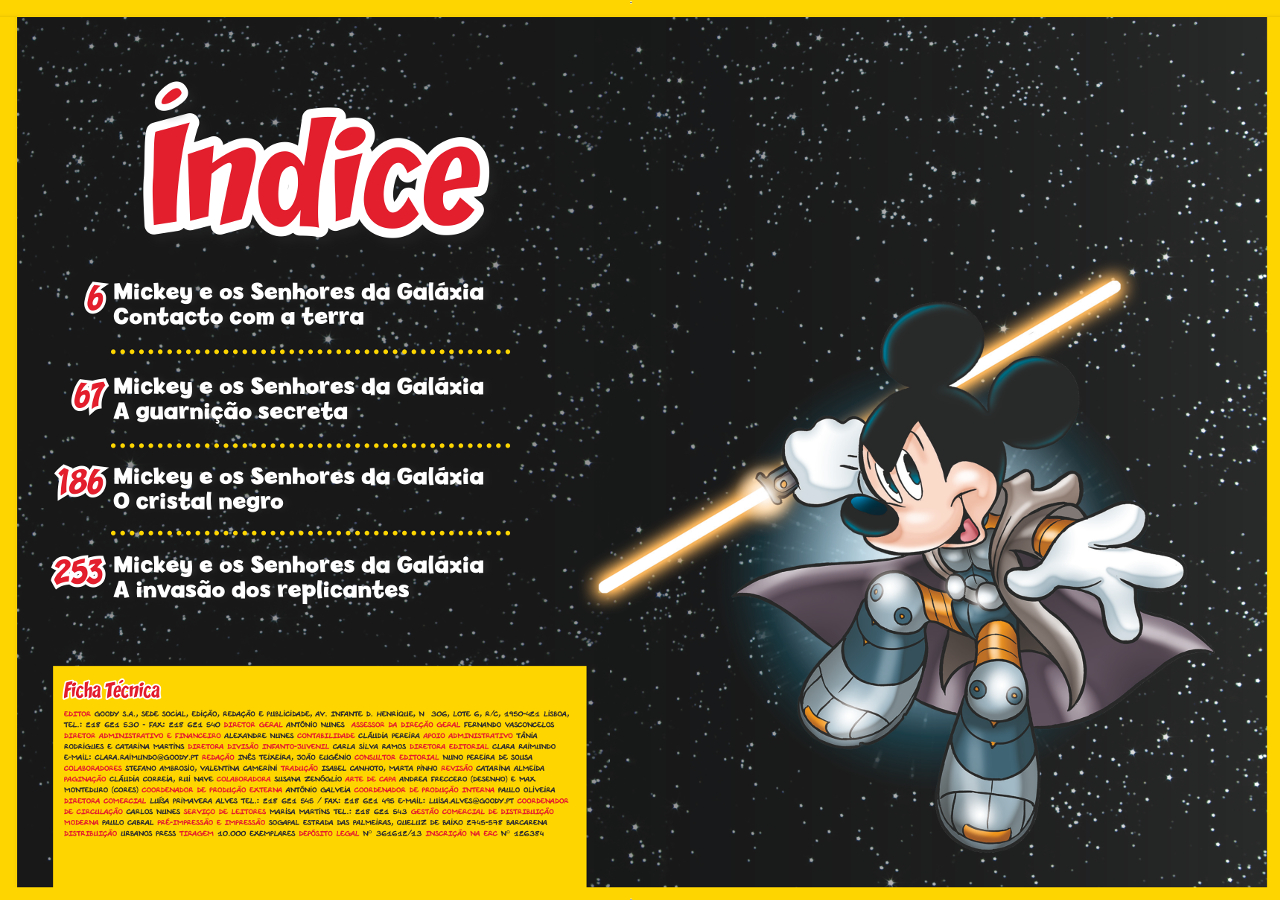 É uma edição inteirinha dedicada a uma saga com muitas referências à obra cinematográfica, onde se parodia e homenageia a mesma, ao mesmo tempo. Os protagonistas vão ser o Mickey e o Pateta, que vão ser requisitados por uma entidade universal para protegerem toda a galáxia de uma ameaça iminente! Uma saga em quatro capítulos distintos, mas ao mesmo tempo interligados, onde os nosso protagonistas vão ter que se revelar verdadeiros heróis rebeldes contra o lado negro desta batalha. Mickey e os Senhores da Galáxia vão levar-te numa viagem inesquecível pelas estrelas!