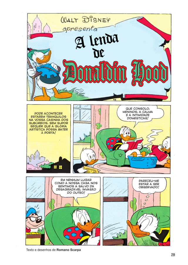 Certamente já ouviste falar do famosíssimo grito de Tarzan, o rei da selva, personagem dos clássicos literários de Edgar Rice Burroughs… Pois bem, aqui o Tarzan vai ser outro! Ao invés da história revolver à volta de um rapaz perdido na selva, que lá cresceu, sozinho e separado dos pais, aqui quem vai ser protagonista vai ser o… Donald?! Sim!!! Ele vai travar uma amizade peculiar e improvável com o gorila King, tornando-se o maior defensor dos valores que imperam na selva! Isto promete!!! Donald e o intrépido Pato-Tarzan vai abrir esta série genial de histórias heróicas, enquanto Tio Patinhas e o recorde disputado vai encerrá-la em grande! E quem já ouviu falar de Tarzan, certamente não será alheio à fama de Robin Hood! Uma vez mais, o nosso pato favorito vai vestir a pele de um herói imortal, desta vez para tirar aos ricos e dar aos pobres! A lenda de Donaldin Hood vai ecoar na eternidade, de tal forma que outra história vai prestar-lhe homenagem: Tio Patinhas à conquista do Leão de Ouro merece um prémio pela sua originalidade! Afinal, é uma história dentro de um filme dentro de uma história. Confuso? Bem, o melhor será mesmo leres esta Especial Grandes Heróis! Podes encontrar, aqui, estas e muitas outras histórias!!![fbshare]