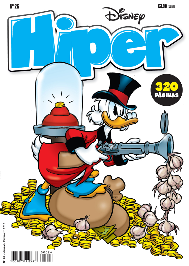 Esta edição da Hiper tem tudo para se tornar um clássico! Se não, repara… Quantos livros de banda desenhada conheces tu que consigam unir clássicos de literatura, lendas históricas e géneros cinematográficos? Bem, pelo menos agora vais ficar a conhecer um! A tua Hiper #26!!! A edição abre da melhor forma, com uma história especial muito ansiada: a adaptação bedéfila de Moby Dick! A caça à baleia gigante vai ser épica (atenção, nenhuma baleia foi ferida na elaboração desta história)! Depois entra em campo o Gansolino, como um improvável cavaleiro. Falamos de Sir Lancelote e os cavaleiros da távola que abunda! Claro que mete comida… Para os fãs de policiais e film noirs temos O Link, onde o Mickey vai fazer aquilo que melhor sabe: estabelecer ligações e investigar! Será que vai chegar a alguma conclusão brilhante? E quem gosta de westerns?! O Donald gostava certamente! Pelo menos quando era miúdo. Podes confirmar isso mesmo em Donald Menino e a estrela d’ouro de Jack Metralhadora! Estas e muitas outras histórias de banda desenhada na tua Hiper!