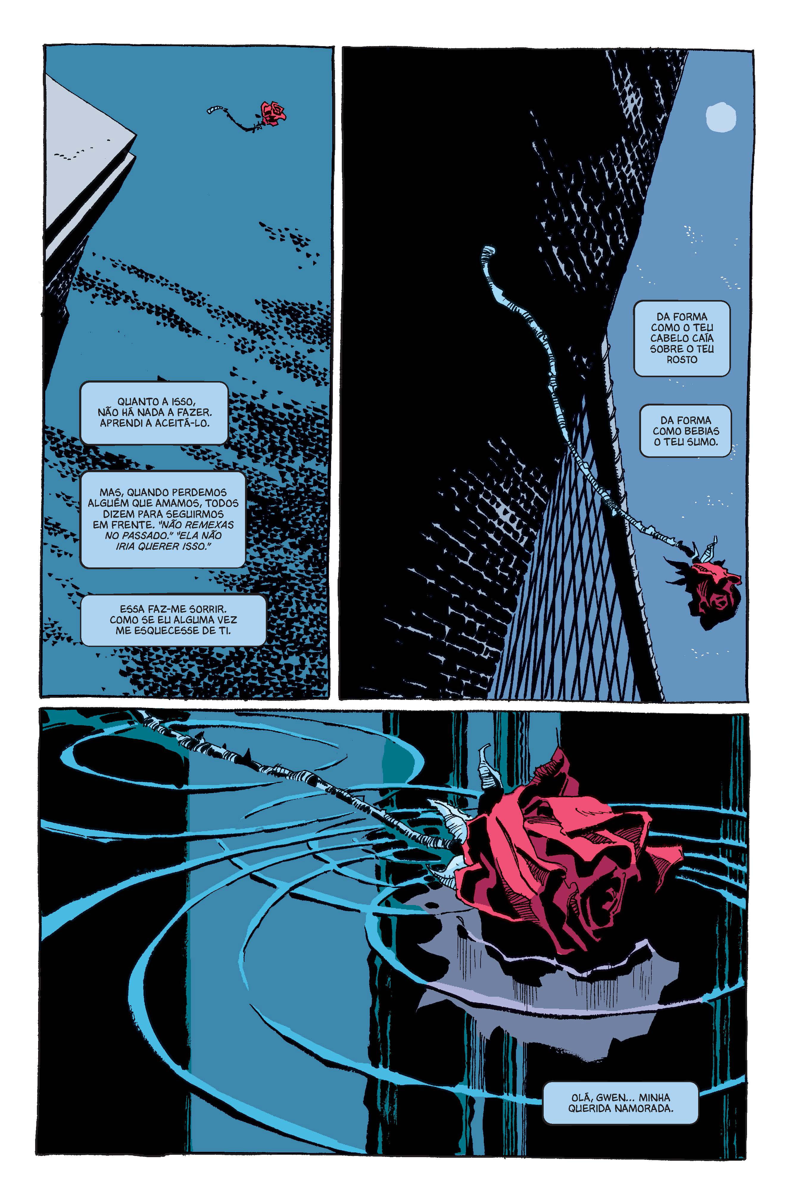 Estamos no Dia dos Namorados, e Peter Parker mergulha numa melancolia saudosa, sentido-se “blue”… e sentado no chão do seu sótão, olhando para a caixa antiga de vinis que marcaram as festas da sua adolescência e anos de faculdade, a música ao som da qual dançou com Gwen Stacy, a menina “dourada” da sua infância, relembra os anos do início da sua carreira. Ao longo de seis capítulos, marcados pela música do jazz alusivo a Nova Iorque, vemos o surgir do namoro entre Peter e Gwen, os seus primeiros trabalhos para o Clarim Diário e J. Jonah Jameson, o surgimento dos seus primeiros grandes inimigos, o Abutre, o Rino, e Kraven o Caçador, a sua amizade com Harry Osborn e o surgimento da outra mulher da sua vida, a ruiva Mary Jane… e a morte trágica de Gwen às mãos do Duende Verde. Uma história de saudade do universo antigo da Marvel e um livro imprescindível na coleção de qualquer fã de comics.