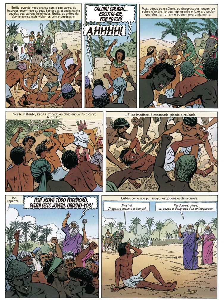 No palácio, Moisés ameaça o Faraó com grandes desgraças se este não autorizar o seu povo a abandonar o Egito. Na sombra, o grande sacerdote Roy prepara a sua vingança. Cumprirá Moisés as suas ameaças?… fbshare]