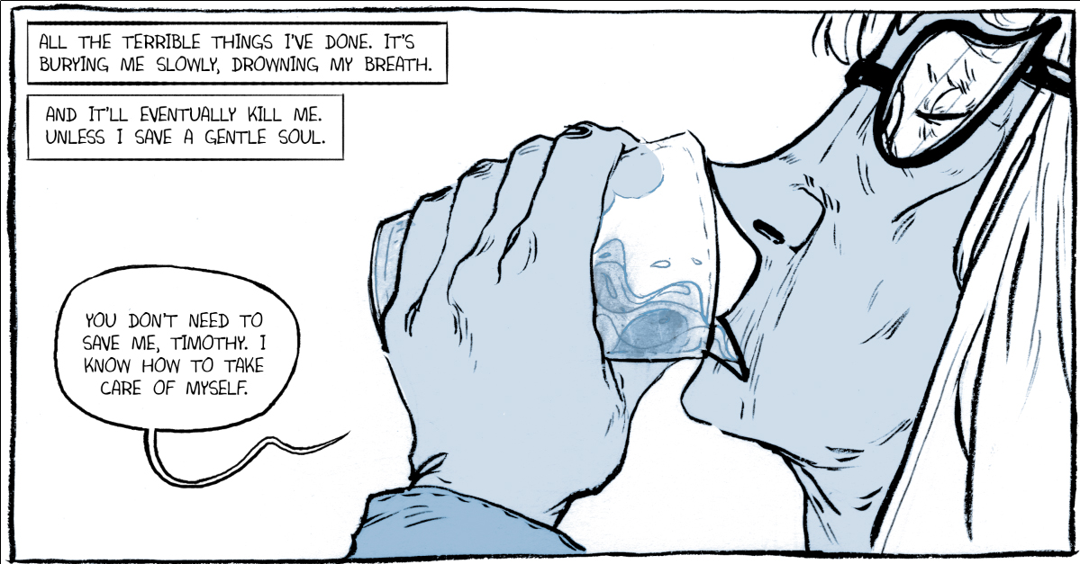 “Chegar a um ponto em que já não restam muitos anos de vida é quase tão assustador como perder a companheira de sempre. O velho Will continua a fazer o seu melhor para lidar com isso, não porque se importa com o futuro mas porque aceitou como missão resolver todas as pontas soltas que foi deixando. Morrer sem peso na consciência terá de ser o seu testamento e a sua derradeira missão. Não tem muita gente a quem possa chamar amigo, honestamente nem sequer tem sido a mais agradável das pessoas nos últimos anos, mas está disposto a revisitar uma amizade muito antiga. Neste segundo número ficaremos também a conhecer Betty Bristow, uma apresentadora de TV que está à beira do precipício. Depois de uma vida de remorsos, tudo o que quer é remediar-se para trazer equilíbrio à sua existência. Se ao menos fosse tão simples…”[fbshare]