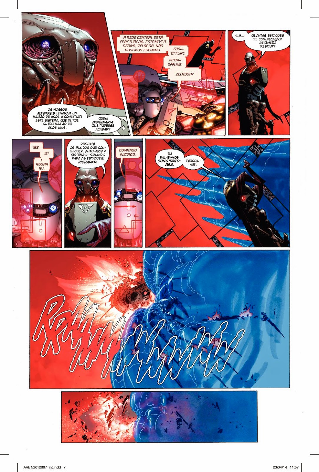 Já saiu o quinto número da revista Os Vingadores (edição portuguesa) nas bancas nacionais. Esta edição inclui as edições #7 a #9 do original Avengers (2013). Lê aqui as primeiras 8 páginas. (clica nas imagens para ampliar).