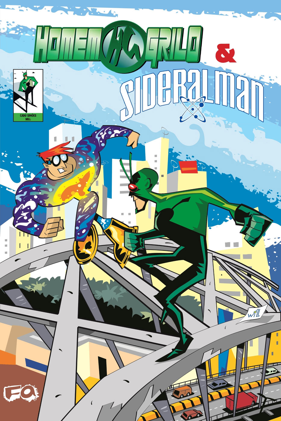 Agora o Homem-Grilo e o Sideralman encontram-se no mesmo universo, trazendo um crossover entre os dois super-heróis. Mais um lançamento FA, dos autores brasileiros Cadú Simões e Will.