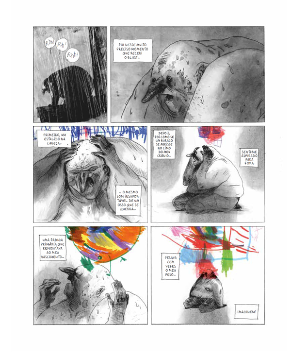 Manu Larcenet é responsável pelo argumento, desenho e cor de BLAST. Nascido em 1969, em Issy-les-Moulineaux, França, é amplamente reconhecido como uma das figuras centrais da chamada Nova Banda Desenhada Francesa.