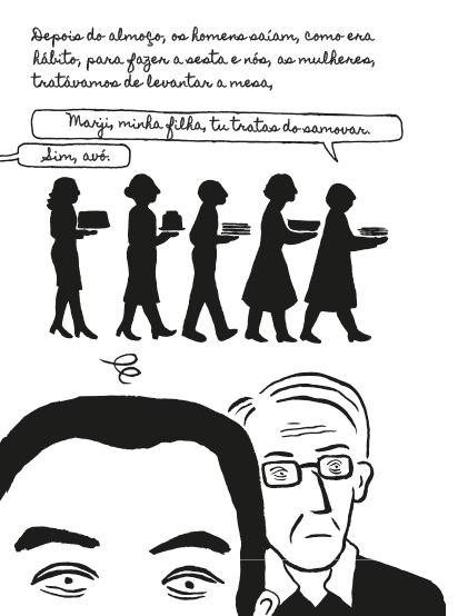 Satrapi volta às histórias de família e à sua Teerão natal e relata como no fim dos almoços na casa da sua avó, o ritual era sempre o mesmo: enquanto os homens iam fazer a sesta, as mulheres arrumavam tudo. Seguia-se uma sessão de conversas entre as mulheres da família,  onde as frustrações, o amor e temas como o casamento, o divórcio e as contradições da convivência eram partilhadas.