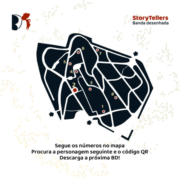 Story Tellers é uma instalação patente no Parque Silva Porto em Benfica, que apresenta uma nova seleção de bandas desenhadas em cada nova estação do ano. São pequenas esculturas da autoria do artista Fulviet e onde se encontram QR Codes que dão acesso a excertos de Bandas Desenhadas de autores nacionais e internacionais. O principal objectivo desta intervenção é dar a conhecer um pouco da história da BD, com especial ênfase na portuguesa, e criar novas formas de apreciar o Parque através da cultura interactiva. Abrindo o Outono do ano passado, estiveram patentes obras de oito autores representando as diferentes épocas da BD portuguesa, do Raphael Bordalo Pinheiro (1846-1905) até Nuno Saraiva, passando por Carlos Botelho (1899-1982), Sérgio Luís (1921-43), Eduardo Teixeira Coelho (1919-2005), José Ruy, Isabel Lobinho (1947-2021) e Fernando Relvas (1954-2017). No Inverno o tema recaiu sobre a cidade de Lisboa com trabalhos de Relvas – justificado com a reedição de Concerto para Oito Infantes e Um Bastardo -, O Eterno Passageiro de Luís Félix, Ana de Nuno Artur Silva e António Jorge Gonçalves, “Bairro Alto” de Ana Cortesão, excertos das antologias Lisboa 24h00 (Bedeteca de Lisboa; 2000) e Lisboa é very very Typical (Chili Com Carne; 2015) e ainda pela primeira vez em português a BD de José Smith Vargas publicada na revista italiana Internazionale.