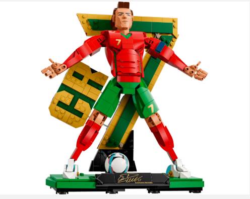 - Para os fãs que querem homenagear CR7, o set LEGO® Editions Cristiano Ronaldo – Destaques do Futebol (43012) forma uma escultórica base de tijolos em forma de R, mostrando as cores de Portugal e o icónico CR7 de Ronaldo. No interior do modelo de 490 peças, os fãs podem encontrar Easter eggs detalhados a traçar o percurso de Ronaldo, além de uma minifigura LEGO de Ronaldo e uma placa colecionável.