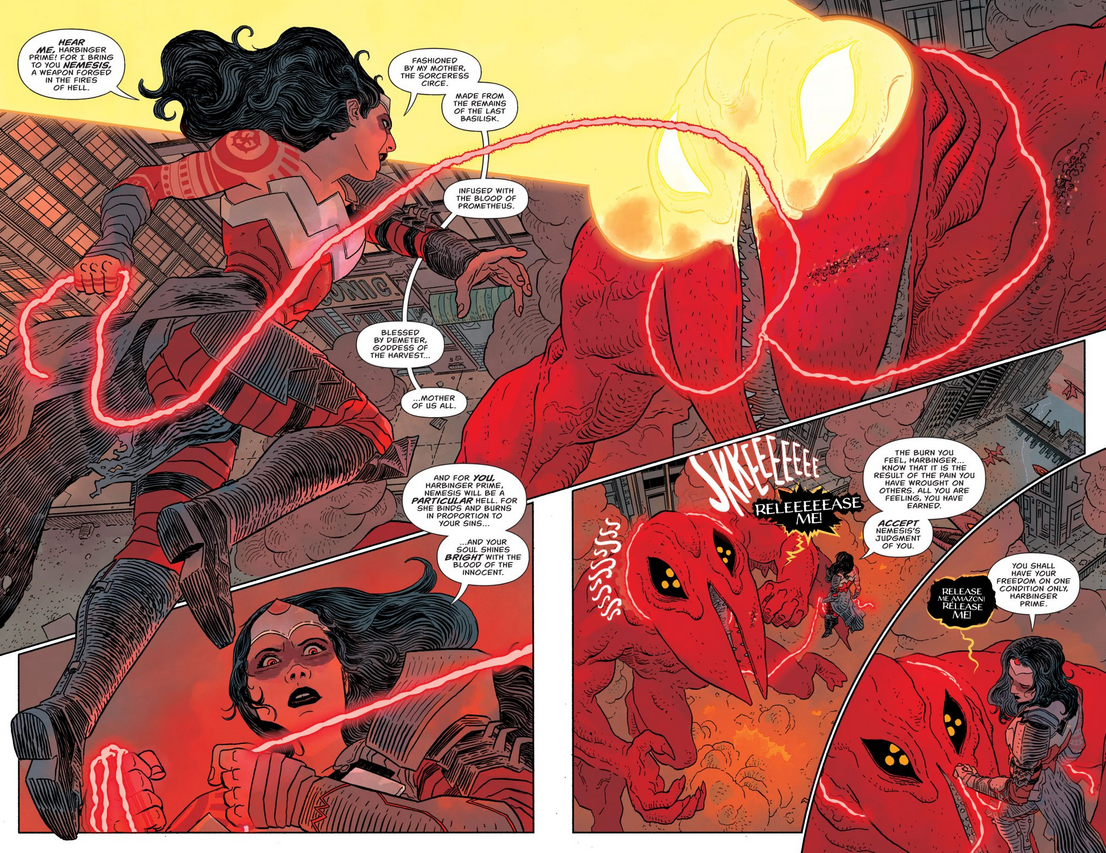 Existe uma rutura criativa clara por parte de Kelly Thompson (argumento) e Hayden Sherman (desenho), que pegam no conceito de Diana e moldam-no de forma surpreendentemente nova. Já não é apenas uma guerreira amazona clássica, mas uma figura moldada por magia e choque, crescida no Inferno.