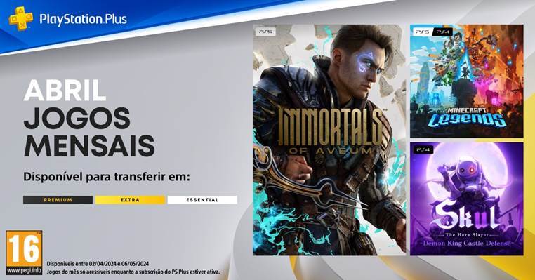 :Immortals of Aveum™, Minecraft Legends e Skul: The Hero Slayer. Títulos estarão disponíveis para download na PlayStation®Store a partir do próximo dia 02 de abril e até ao dia 06 de maio de 2024.