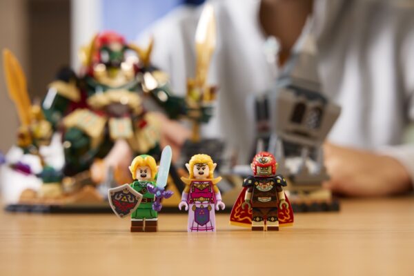 Este conjunto inclui três minifiguras LEGO: Link, Princesa Zelda e Ganondorf, além de uma grande figura de Ganon e Navi. Os construtores podem desfrutar da viagem nostálgica de reunir estas acarinhadas personagens enquanto revivem a tensão e o triunfo da icónica batalha final do jogo.