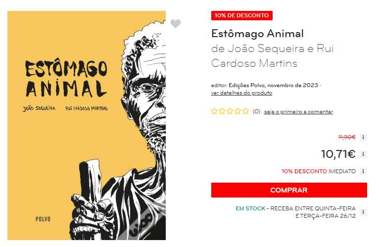 Estômago Animal, é o novo álbum do autor João Sequeira, baseado num conto de Rui Cardoso Martins, e novamente num lançamento da editora Polvo.