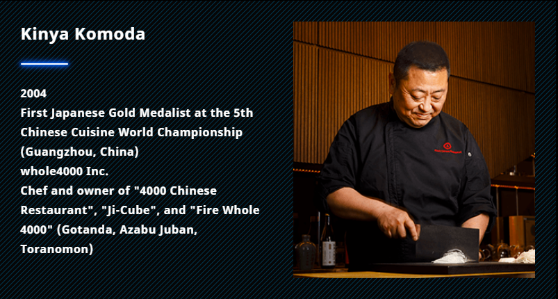 Proprietário e Chef, e o primeiro Medalha de Ouro japonesa no 5º Campeonato Mundial de Cozinha Chinesa de 2004  (Guang Zhou, China) Individual Hot Dishes division, Kinya Komoda vai subir ao palco em “KAKAROT COOKING” para recriar menus que aparecem em “DRAGON BALL Z: KAKAROT”!