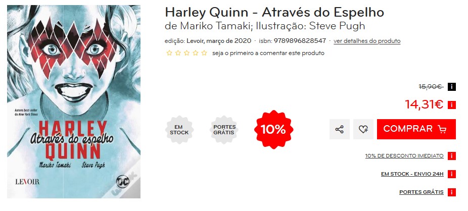 Saiu a 20 de Março mais um livro da Harley Quinn pela Levoir. “Através do Espelho” de Mariko Tamaki e Steve Pugh é a nova proposta.
