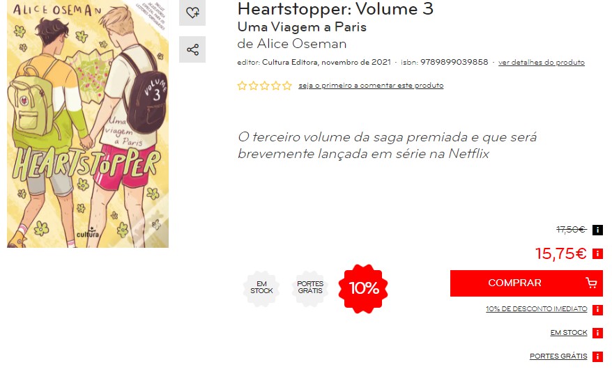 E para celebrar o lançamento de «Heartstopper: Volume 3» a editora preparou uma nova edição da tote bag do Heartstopper disponível para compra online no seu site!