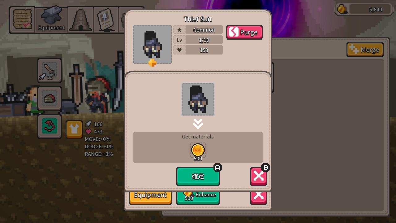 Para lutarmos contra as hostes progressivamente mais poderosas de inimigos (e bosses de final de masmorra), teremos na verdade de usar armas que encontramos ao longo das várias masmorras, ou que forjamos por nossa iniciativa. Tirando uma brevíssima (e bastante escondida) referência no separador de Ajuda, não há qualquer explicação clara de como funciona este processo de fabrico, fusão e desmantelamento de peças de equipamento – processo esse que, a título de curiosidade, inclui o ocasional elemento de interface em japonês. Só passadas algumas horas descobri acidentalmente que era possível personalizar o equipamento e a personagem ao nosso gosto.