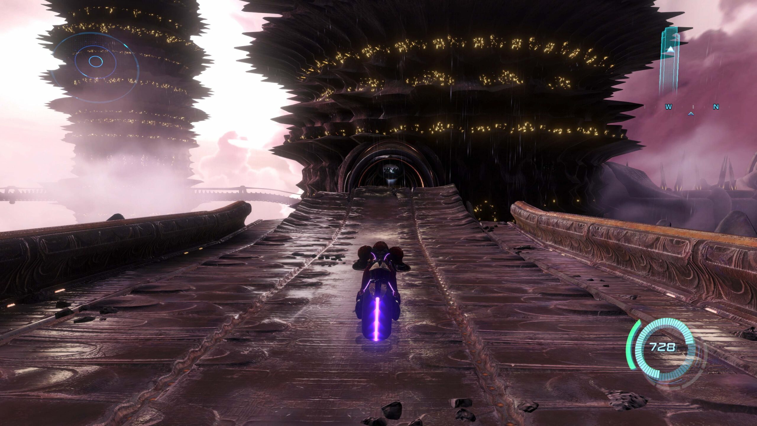 Falando em locomoção, a mota Vi-O-La merece um parágrafo próprio. Este é o tipo de instrumento que torna um hub interessante em vez de enfadonho. Tem uma condução precisa, derrapa com estilo e oferece melhorias relevantes, tanto na mobilidade como no ataque. Sol Valley é enorme, mas a mota transforma-a num palco dinâmico em vez de um deserto vazio.