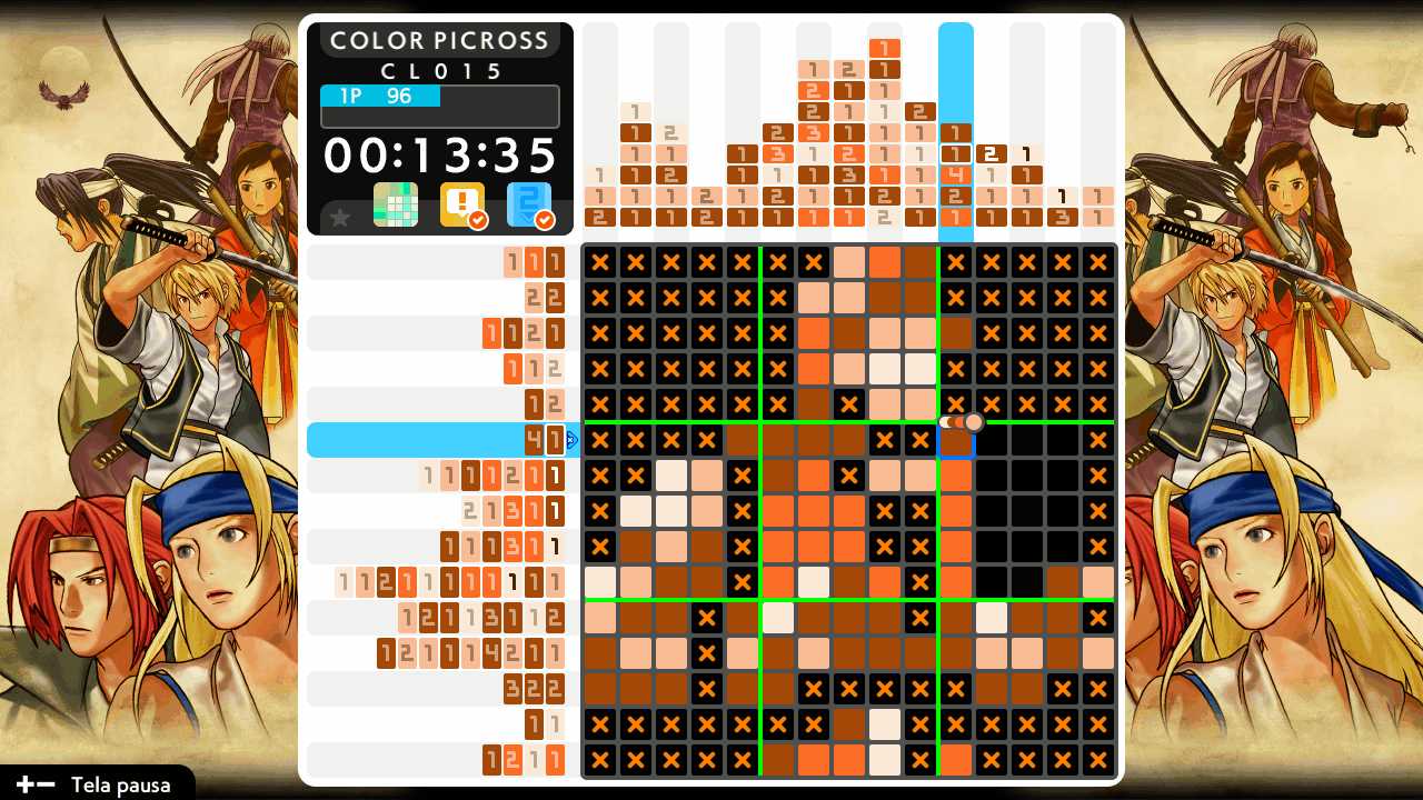 A adição que mais se destaca é o Time Attack. Trinta puzzles, temporizadores rigorosos e penalizações por erros dão ao Picross uma inesperada dose de adrenalina. A versão da SNK vai ainda mais longe, apresentando o modo como se fosse uma arena de combate, com personagens a executar golpes em segundo plano. É um pequeno toque, mas funciona. De repente, Picross parece competitivo, até stressante, no bom sentido.