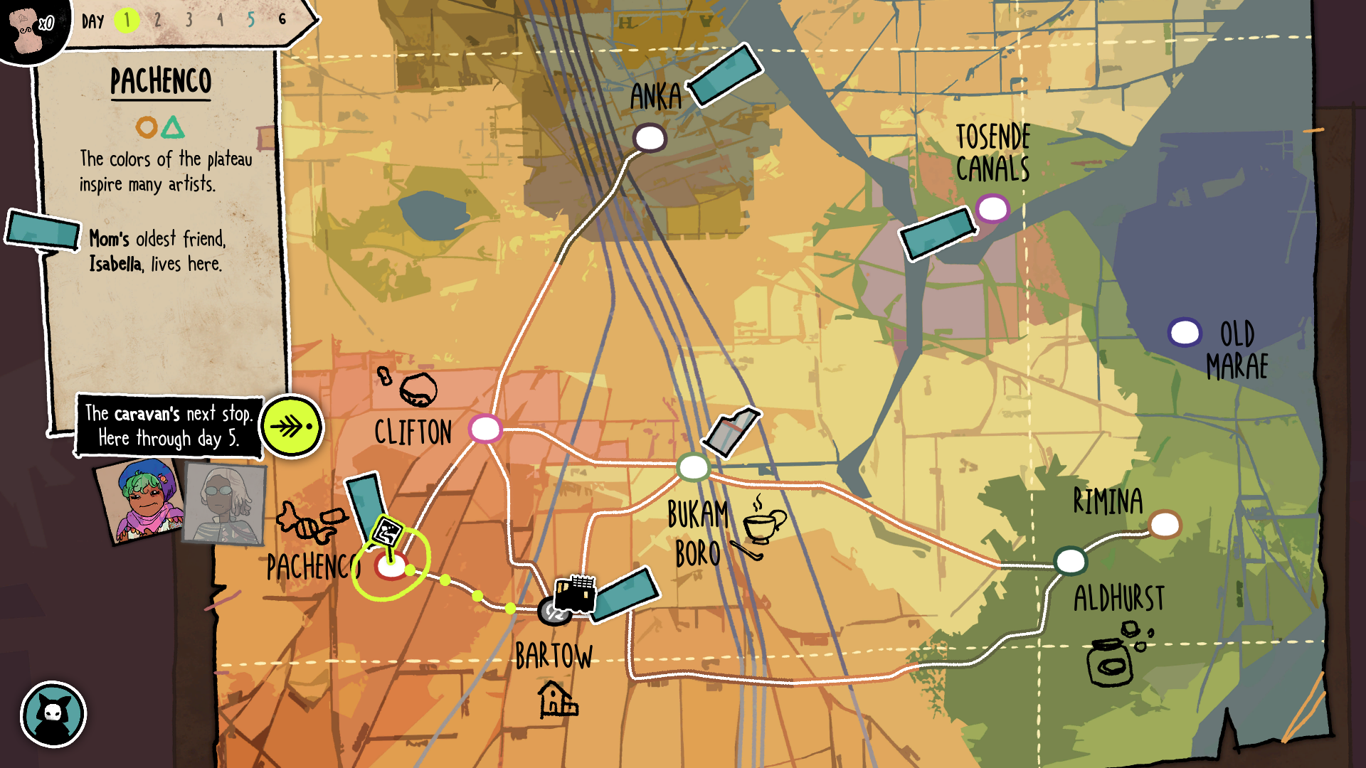Signs of the Soujoumer é um jogo que explora relações, como elas se formam, como acabam e como se remendam. A ideia é bem conseguida e como se enquadra no jogo é interessante. Depois da morte da nossa mãe, ficamos a tomar conta da loja dela e para conseguirmos fazê-lo temos que viajar de caravana por várias terras de forma a encontrar tesouros. E como é que conseguimos tais tesouros? Através de conversas e com a criação de laços de amizade e outros tipos de relação.