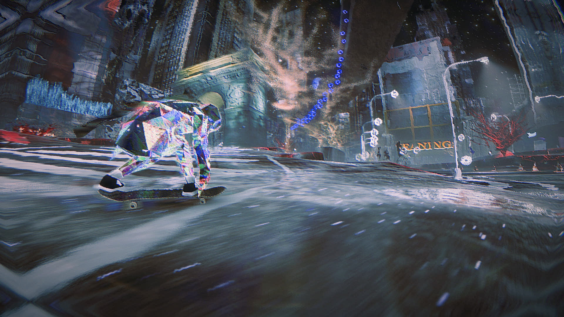 Visualmente, Skate Story é inesquecível. A estética cristalina lo-fi, o grão de filme, a câmara trémula e a névoa espectral criam uma textura onírica que permanece muito depois dos créditos finais. A banda sonora de Blood Cultures e John Fio eleva tudo, reagindo dinamicamente à velocidade e ao desempenho. Não é música de fundo, é parte integrante da linguagem de design.