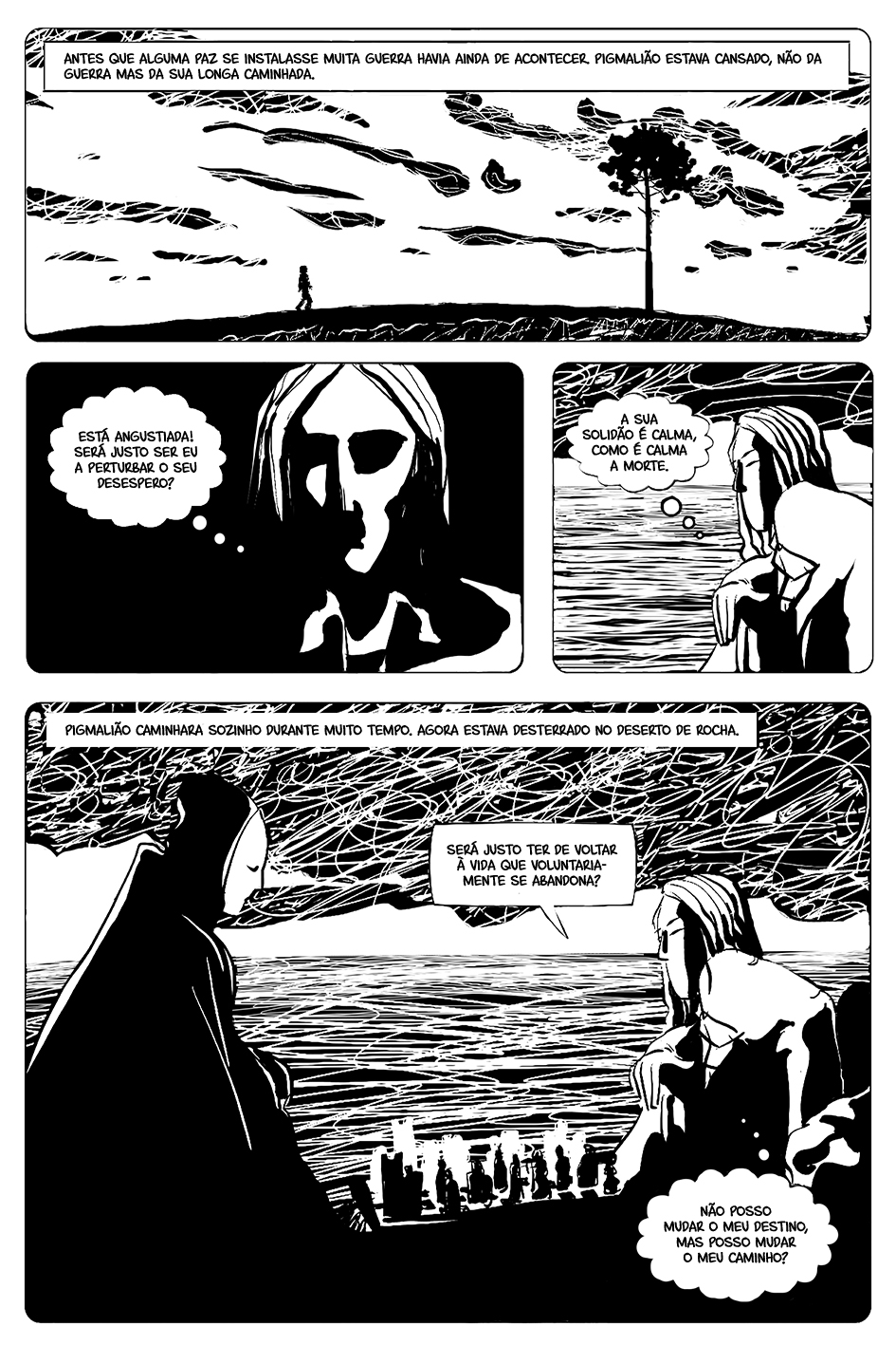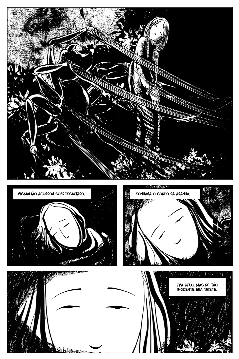 Numa floresta sombria esconde-se um ser furtivo: a Aranha. A curiosidade atrai Pigmalião com uma força irresistível que o guia numa viagem de autodescoberta. Esta história leva-nos no percurso de Pigmalião rumo ao objeto do seu desejo. Neste caminho, as imagens servem de pretexto para conhecermos o seu pensamento.