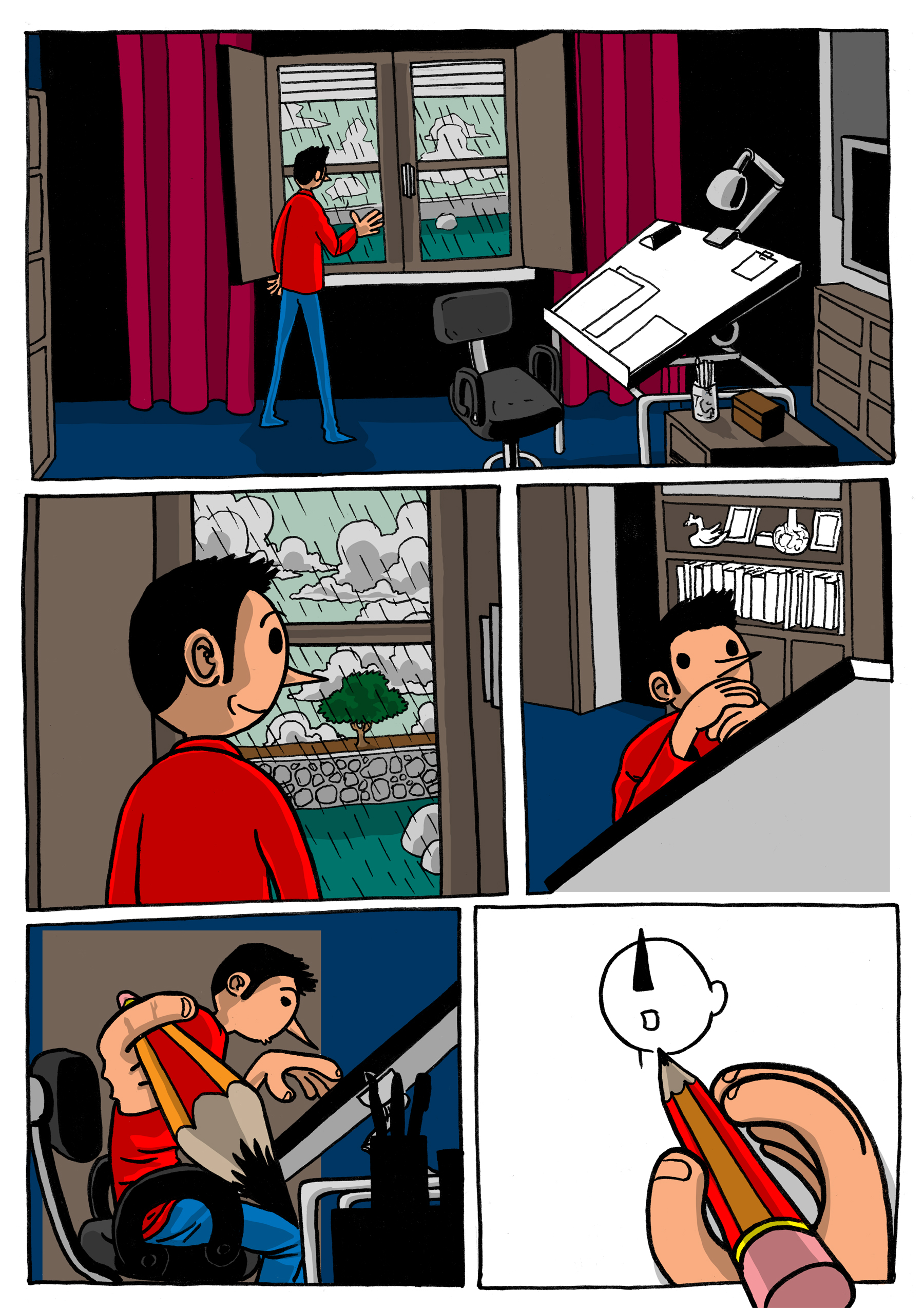 Momentos da vida do autor misturam-se com ficção, numa banda desenhada que conta tudo sem usar palavras, recorrendo por vezes a uma iconografia própria para tentar dar ao leitor mais algum sentido.