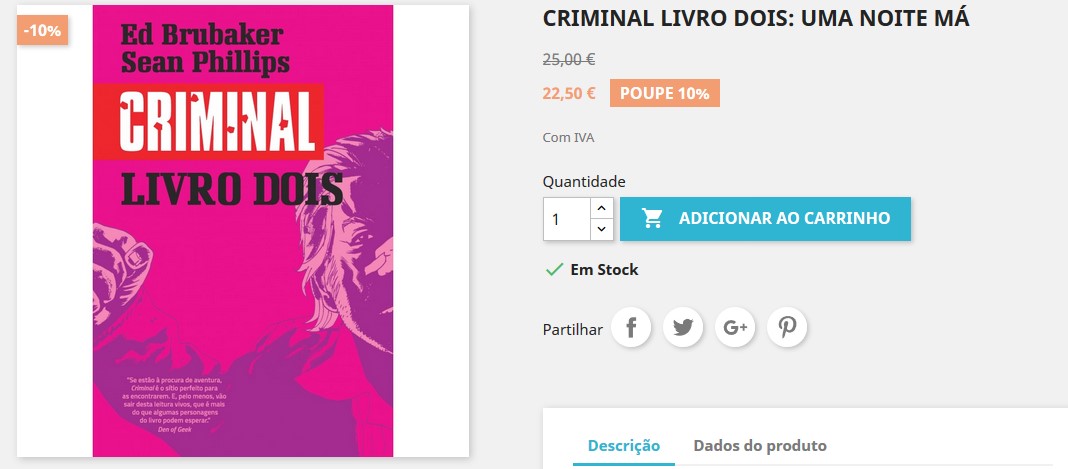 Criminal é uma das séries mais aclamadas da banda desenhada actual, uma meditação profunda sobre os clichés do policial e do noir, que se quer no entanto realista e credível, e é a obra maior de uma das maiores duplas de criadores de comics de sempre, Ed Brubaker e Sean Phillips.