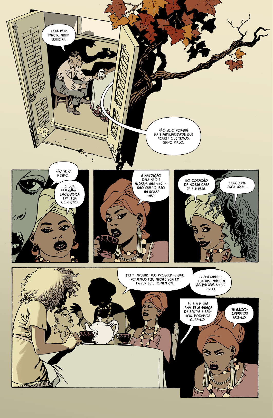Delia, a amante do gângster Lou Pirlo, parte numa demanda para o libertar da sua maldição licantrópica. Para esse efeito, pede ajuda a duas bruxas, que lhe cobrarão um preço bem elevado, mas Lou é um homem cheio de recursos e está disposto a fazer o que for preciso para pagar. No entanto, quando já nem alma se tem para vender, coisas más tendem a acontecer. Dos antros sórdidos de Nova Orleães aos mais tenebrosos pântanos do bayou, este novo volume de Moonshine está recheado de acção policial sobrenatural!