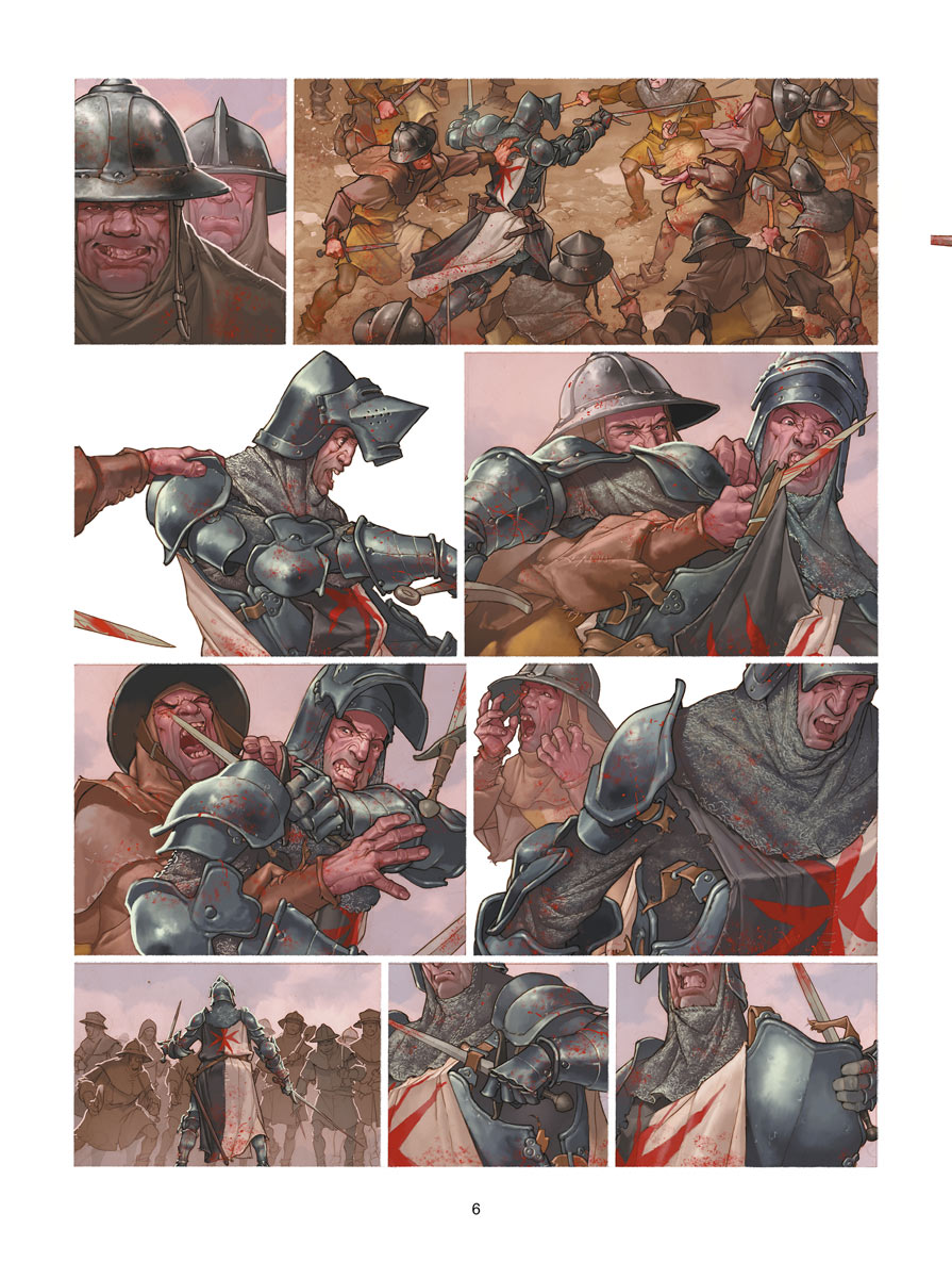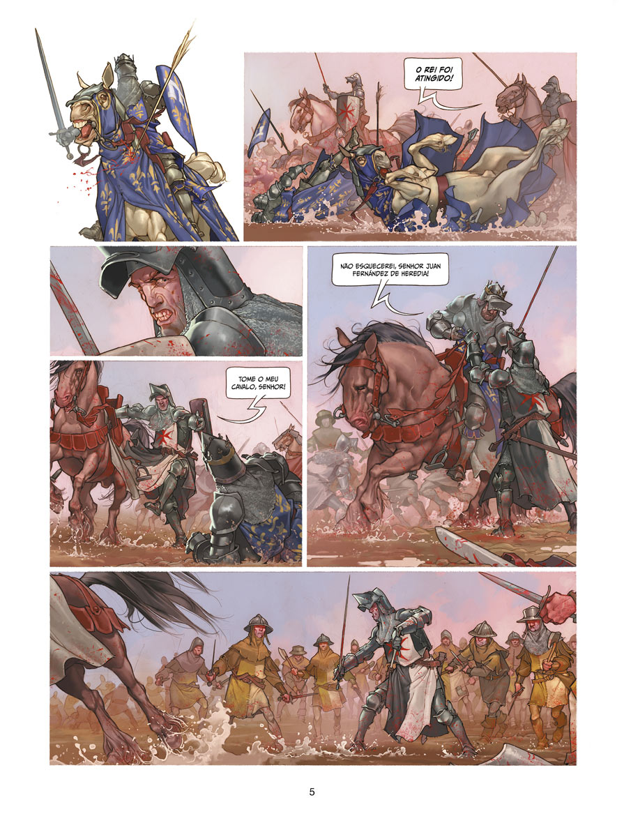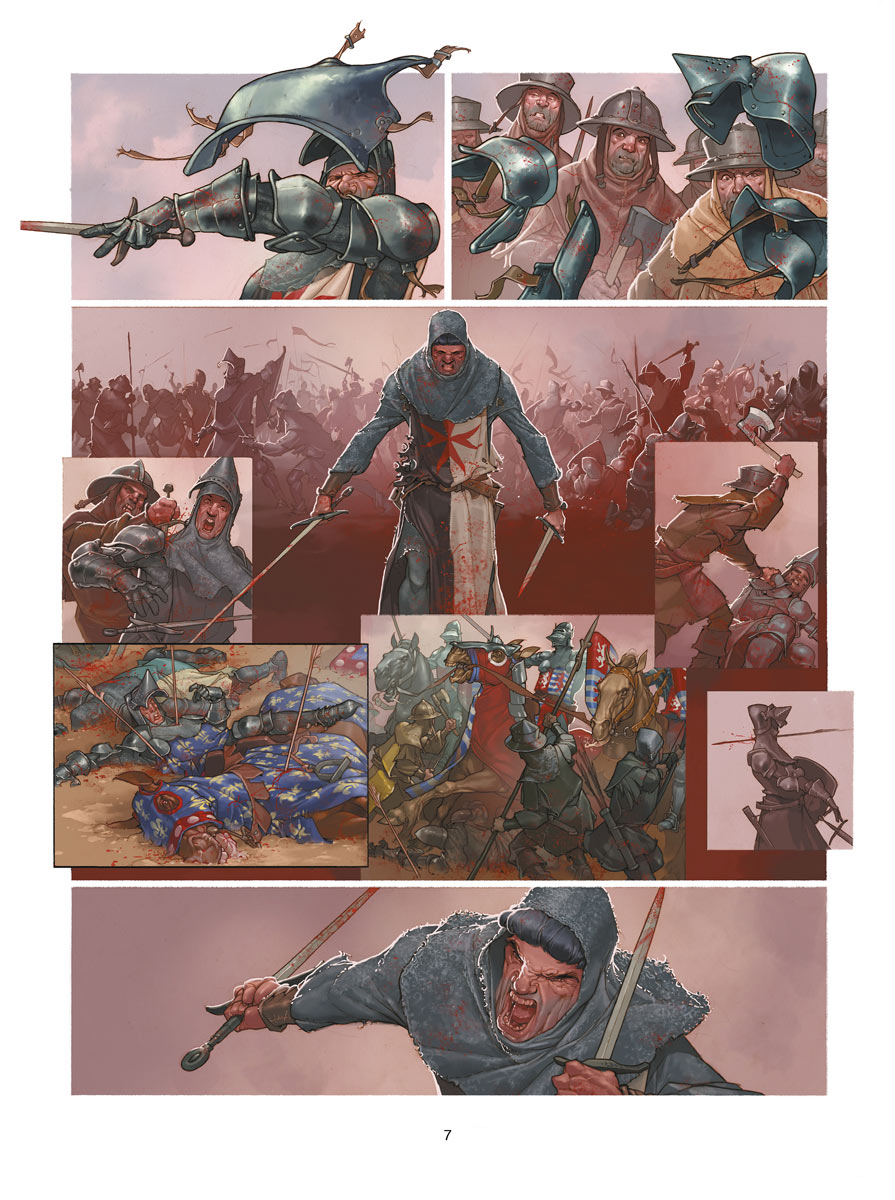 1346, Crécy. Juan de la Heredia, cavaleiro da Ordem dos Hospitaleiros, veste com orgulho as cores do rei de França, neste dia sangrento, o da batalha de Crécy e do início da Guerra dos Cem Anos.