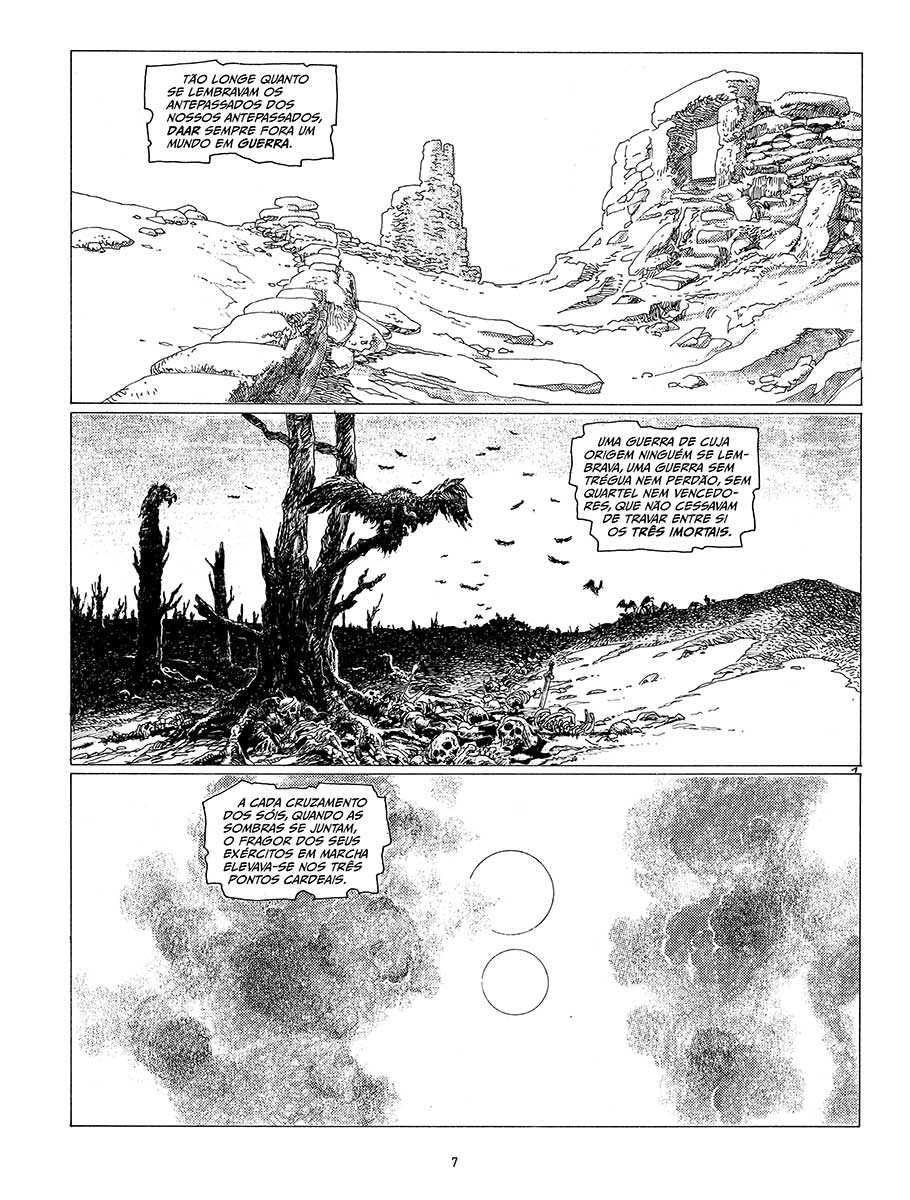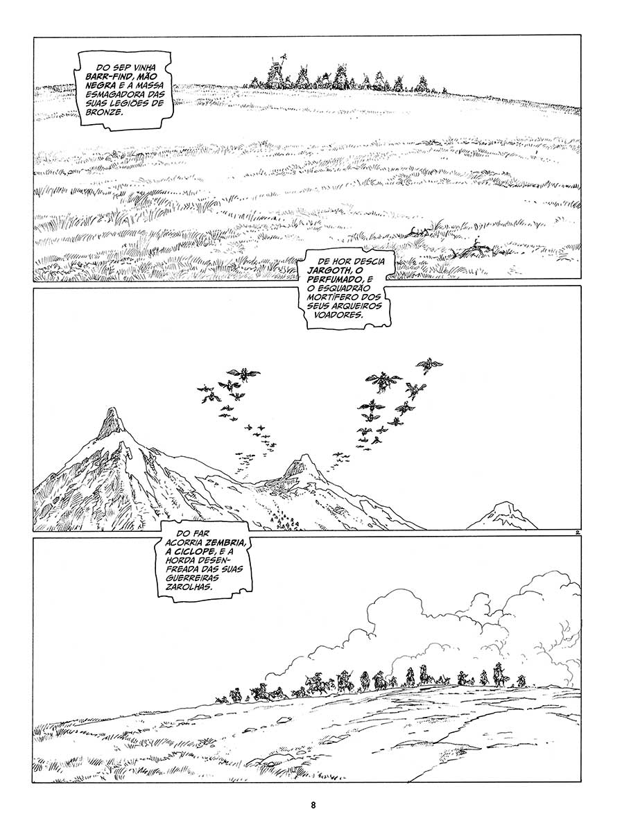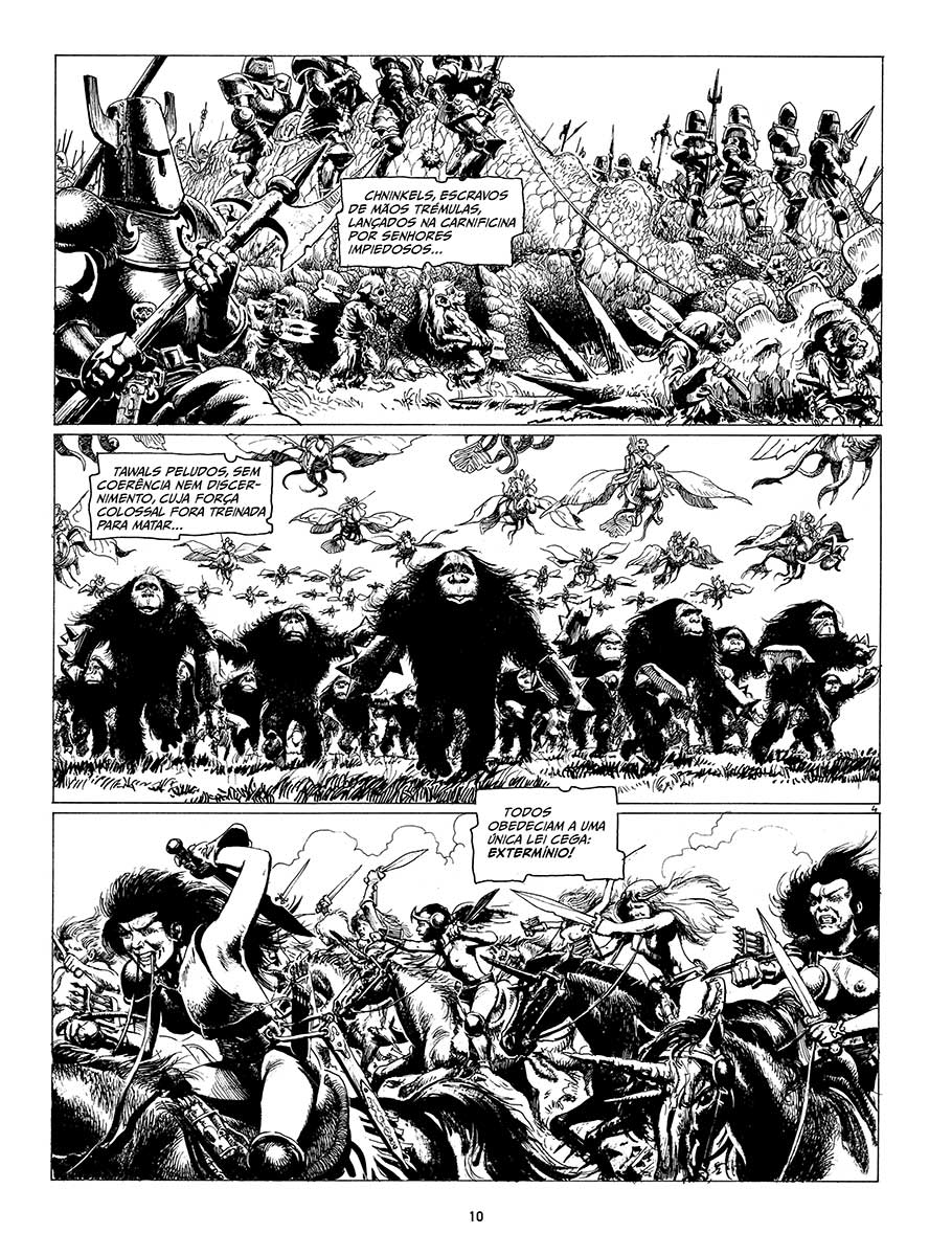 Liberto das restrições da cor, o traço de Rosinski floresce na representação épica de cenas de batalhas com inúmeros combatentes.