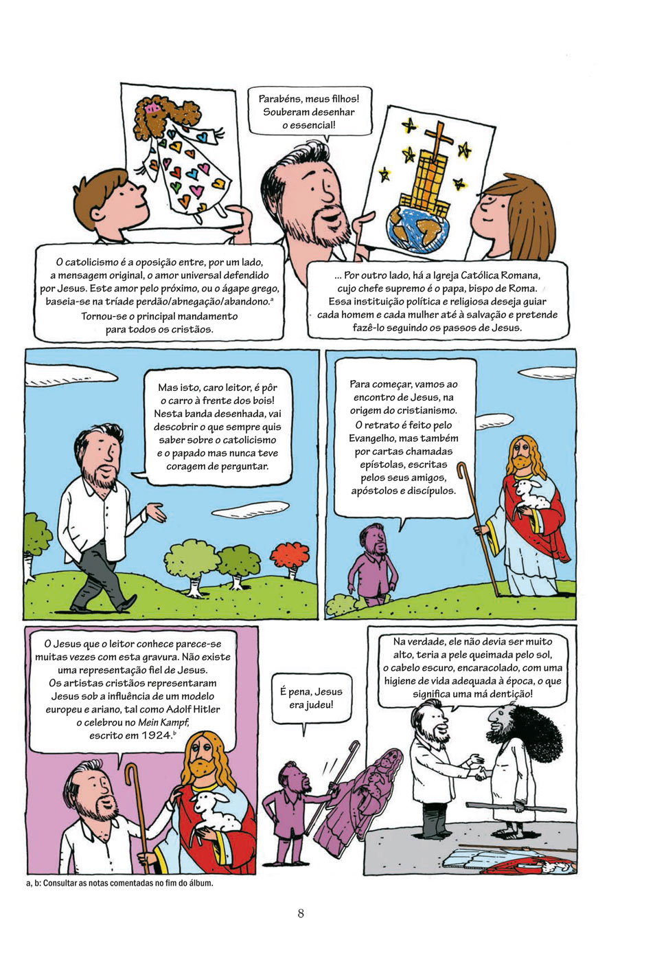Como é que a mensagem original de amor e tolerância do Jesus do Evangelho pôde inspirar simultaneamente as guerras religiosas e os mosteiros admiráveis que acolhiam os peregrinos, os pobres e os doentes; as Cruzadas sanguinárias e Francisco de Assis, que falava com os pássaros; o horror da Inquisição e o nascimento da universidade; a decadência dos papas Bórgias e os frescos de Miguel Ângelo?