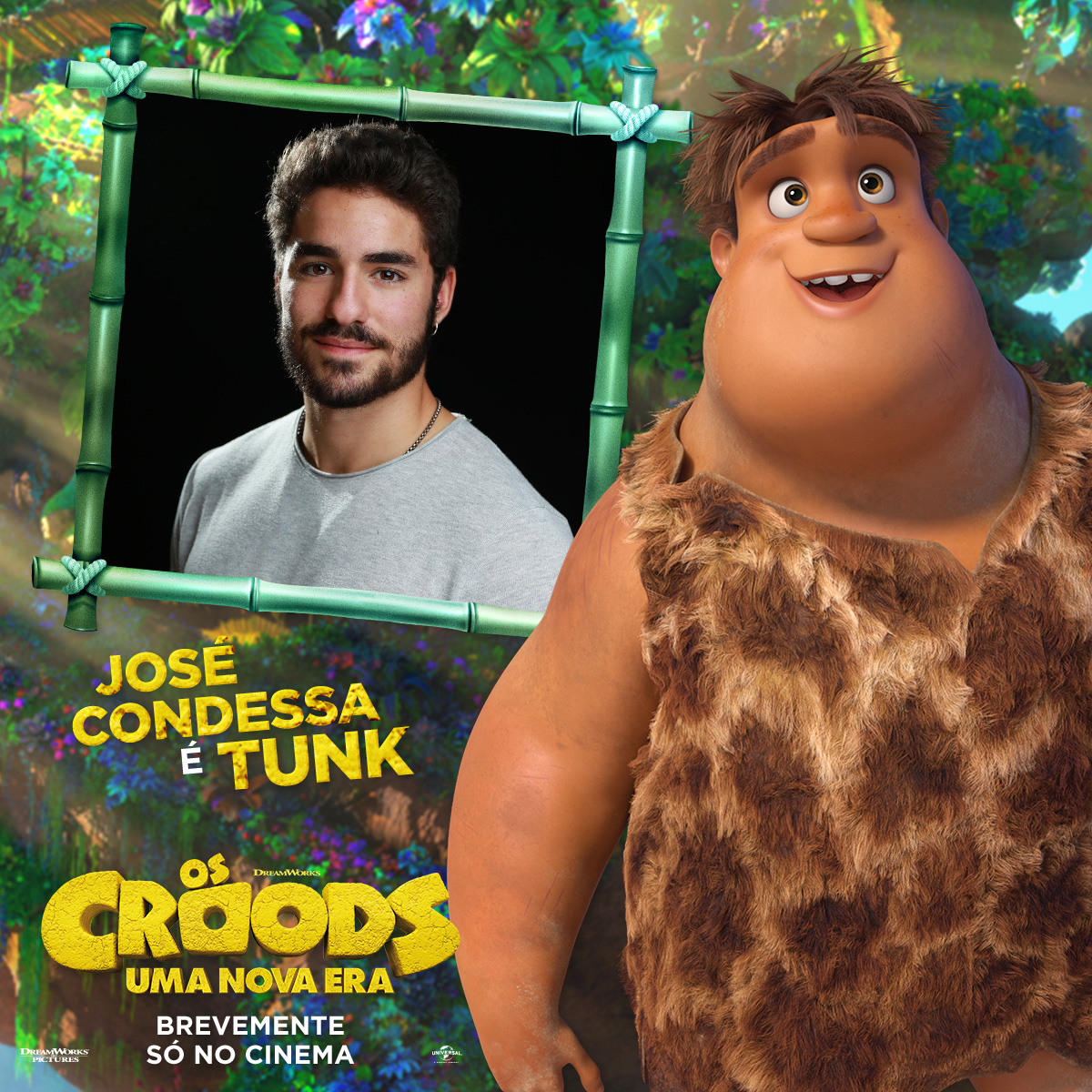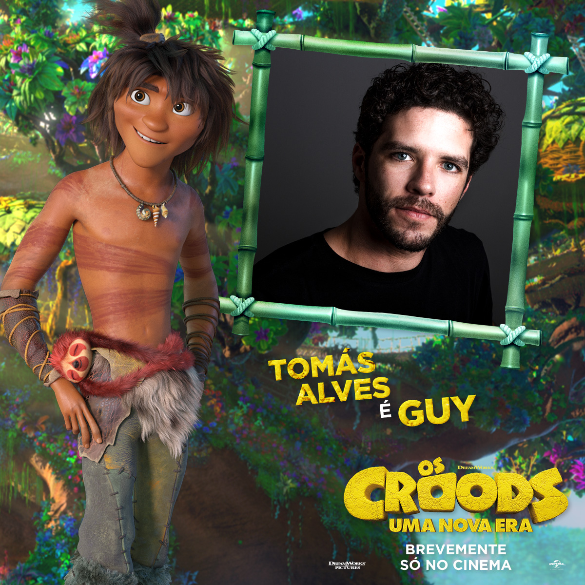 Tomás Alves é Guy, o jovem que vive com os Croods