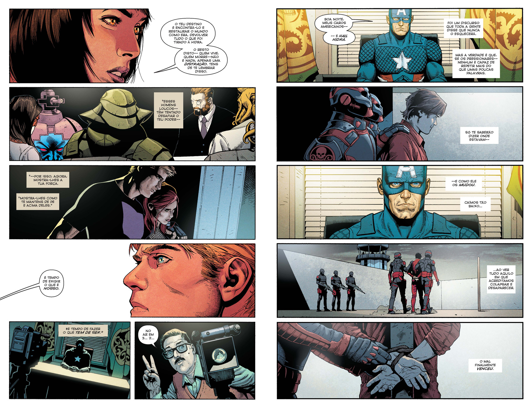 Depois de meses de manipulação e esquemas, Steve Rogers, o Capitão América original transformado por um Cubo Cósmico num agente adormecido da Hidra, conseguiu finalmente que os Estados Unidos ficassem sob o controlo desta organização criminosa. Para piorar a situação, a Terra prepara-se para ser atacada por uma gigantesca horda Chitauri, tendo sido criado um impenetrável Escudo de Defesa Planetária para evitar a invasão. A criação do mesmo deixou muitos dos seres mais poderosos da Terra fora do Planeta, encontrando se apenas um punhado de heróis em posição de contrariar o sinistro regime do Capitão América… ou arcar com as consequências. O Império Secreto, uma das mais fortes sagas da Marvel dos últimos tempos, em todo o seu esplendor.