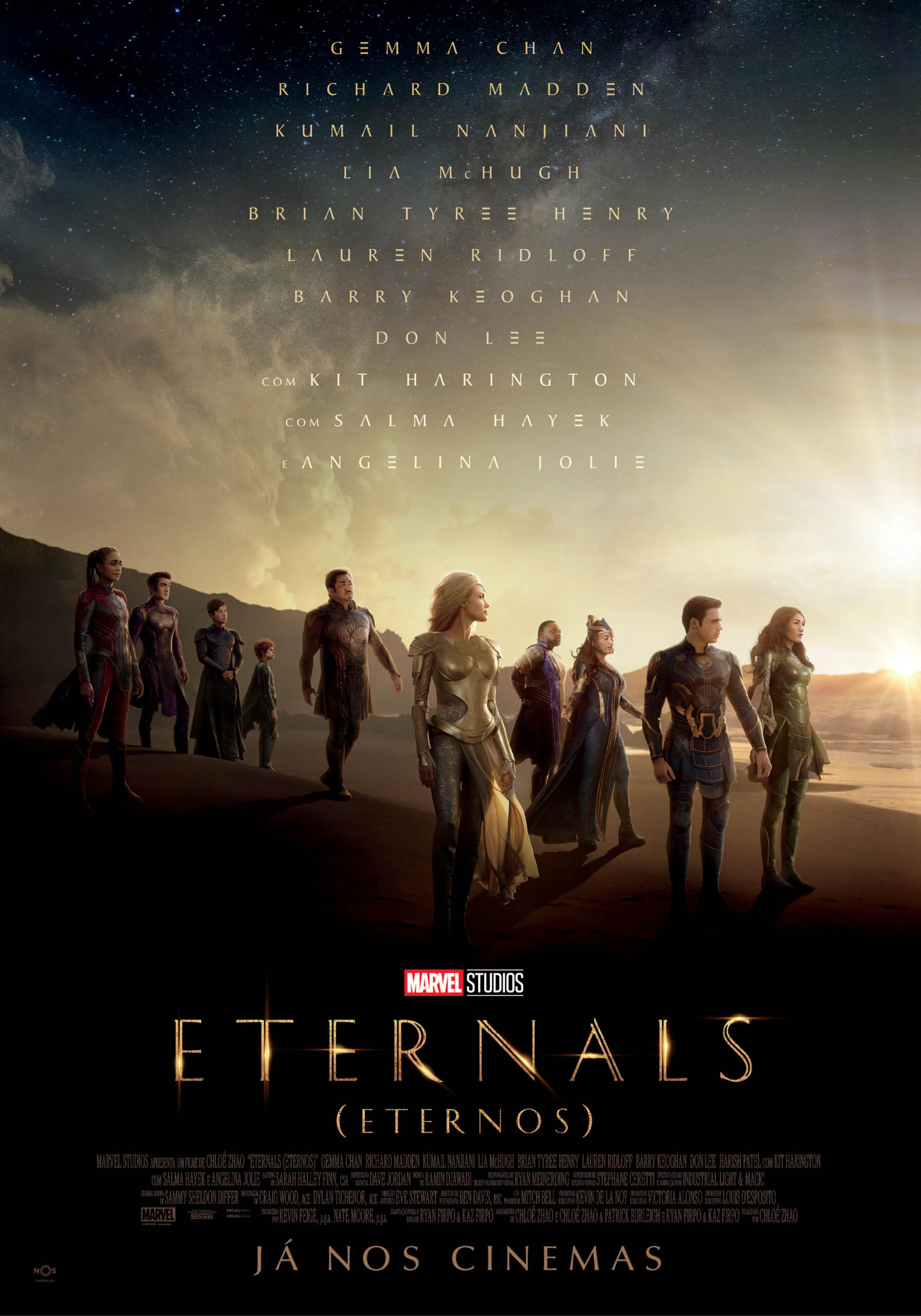 Gemma Chan, Richard Madden, Kumail Nanjiani, Lia McHugh, Brian Tyree Henry, Lauren Ridloff, Barry Keoghan, Don Lee, com Kit Harington, Salma Hayek e Angelina Jolie, num filme realizado por Chloé Zhao