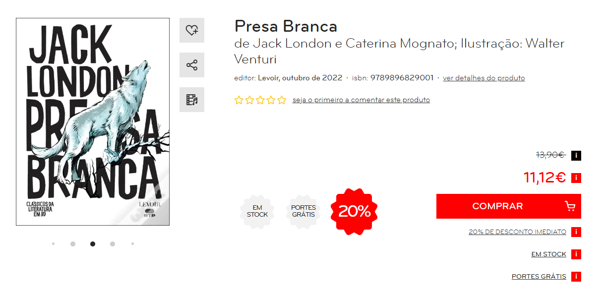 Presa Branca, a obra mais importante na carreira do escritor Jack London, é o volume 22 da coleção “Clássicos da Literatura em Banda Desenhada” foi editada pela Levoir e RTP a 25 de outubro.