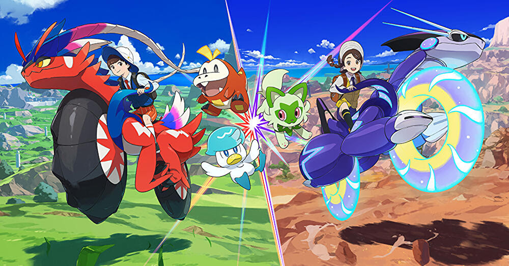 Os jogos Pokémon Scarlet e Pokémon Violet representam um novo passo evolutivo na série principal da Pokémon, permitindo aos jogadores explorar um mundo aberto em que várias cidades, sem quaisquer fronteiras, se misturam perfeitamente com o vasto território selvagem da região de Paldea. Os jogadores começarão a sua aventura pela escolha de Sprigatito, Fuecoco ou Quaxly como o seu primeiro Pokémon parceiro e, em seguida, partirão para a Naranja Academy em Pokémon Scarlet ou a Uva Academy em Pokémon Violet.