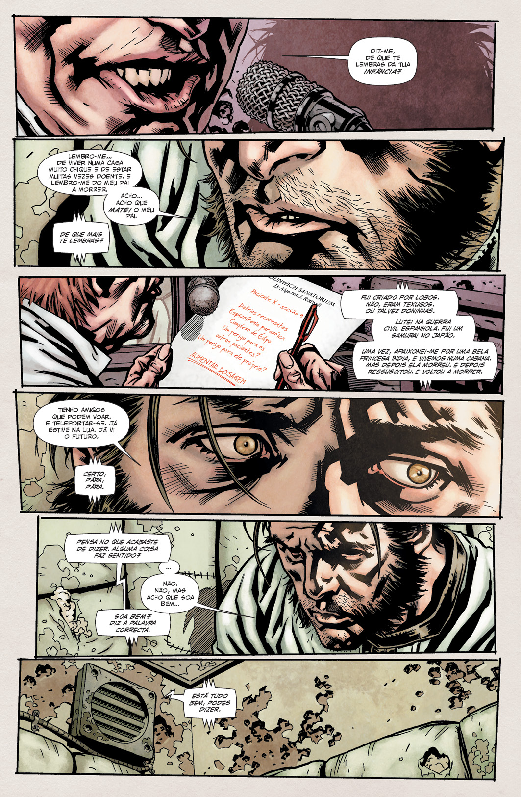 Mas agora perdeu tudo isso, memórias e compreensão, e está preso numa cela acolchoada, num asilo para loucos como nenhum outro. Sem memória de quem é, ou de como ali chegou, Wolverine está a mercê do misterioso Dr. Rottwell e dos seus guardas sádicos. E, enquanto Wolverine luta para descobrir quem ele realmente é, e como foi parar a um sanatório cheio de assassinos psicopatas, torna-se claro que os objectivos do Dr. Rottwell são tudo menos altruístas. Conseguirá Wolverine voltar aos seus sentidos antes de sucumbir a uma das terríveis curas do doutor?